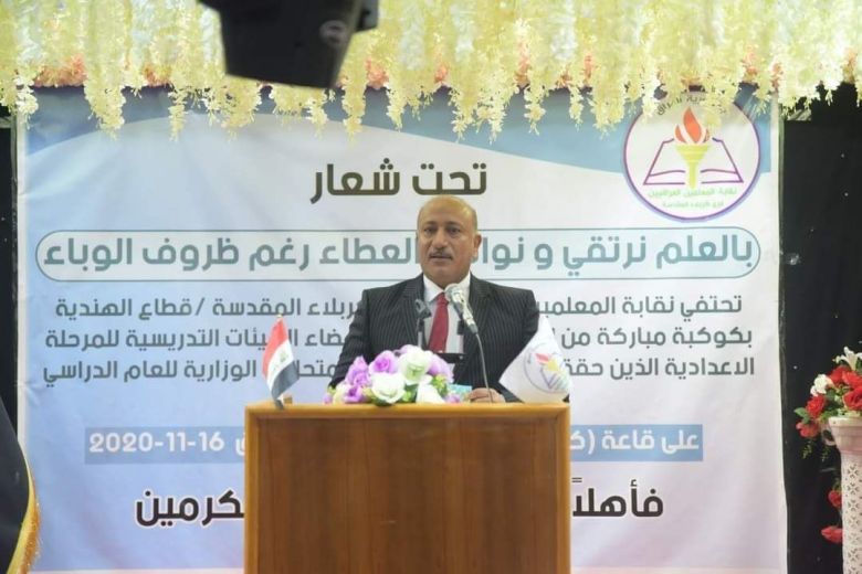 احتفى فرع نقابة المعلمين العراقيين في كربلاء قطاع الهندية بكوكبة مباركة من الادارات المدرسية واعضاء الهيئات التدريسية للمرحلة الاعدادية الذين حققوا نتائج متقدمة في الامتحانات الوزارية للعام الدراسي ٢٠١٩_٢٠٢٠م بحضور المهندس نصيف جاسم الخطابي محافظ كربلاء المقدسة ونقيب المعلمين العراقيين عباس السوداني ورئيس واعضاء فرع نقابة معلمي كربلاء.