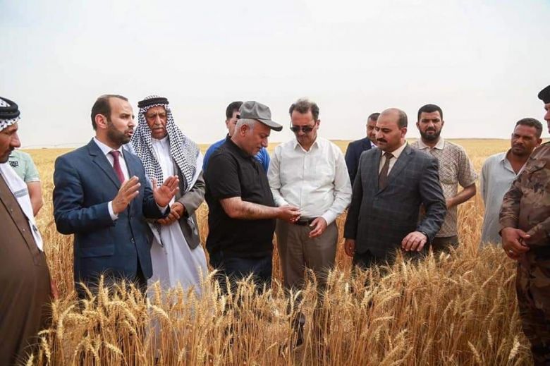محافظ كربلاء ومدير الزراعة يتابعان عملية حصاد الحنطة وتوقعات بوصول الانتاج الى أكثر من ٩٠ الف طن