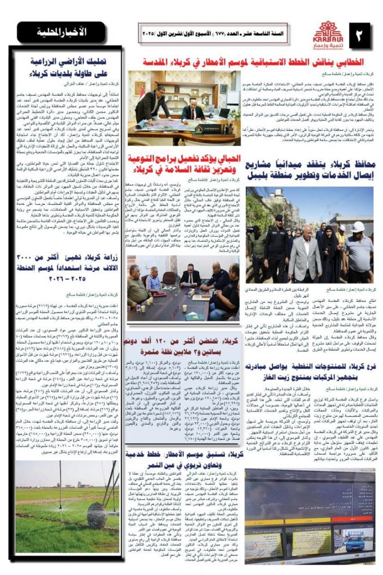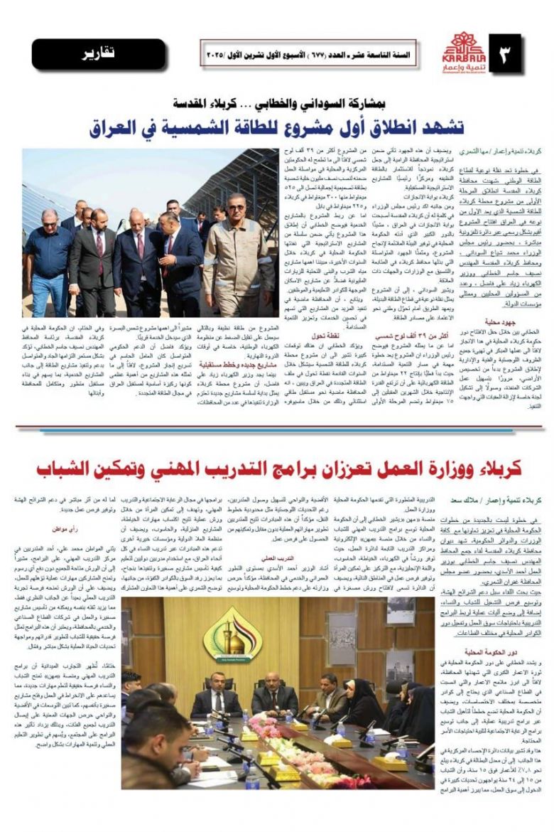 تصفح صحيفة كربلاء تنمية واعمار ذي العدد 682