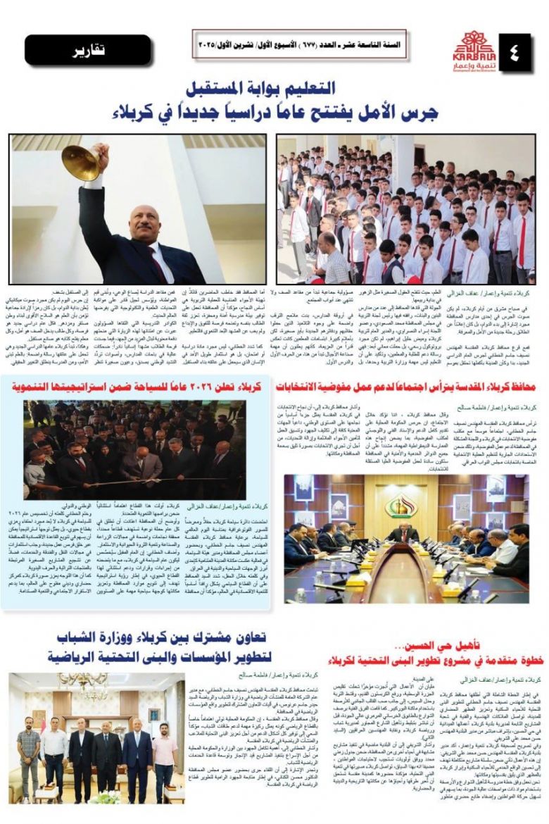 تصفح صحيفة كربلاء تنمية واعمار ذي العدد 680