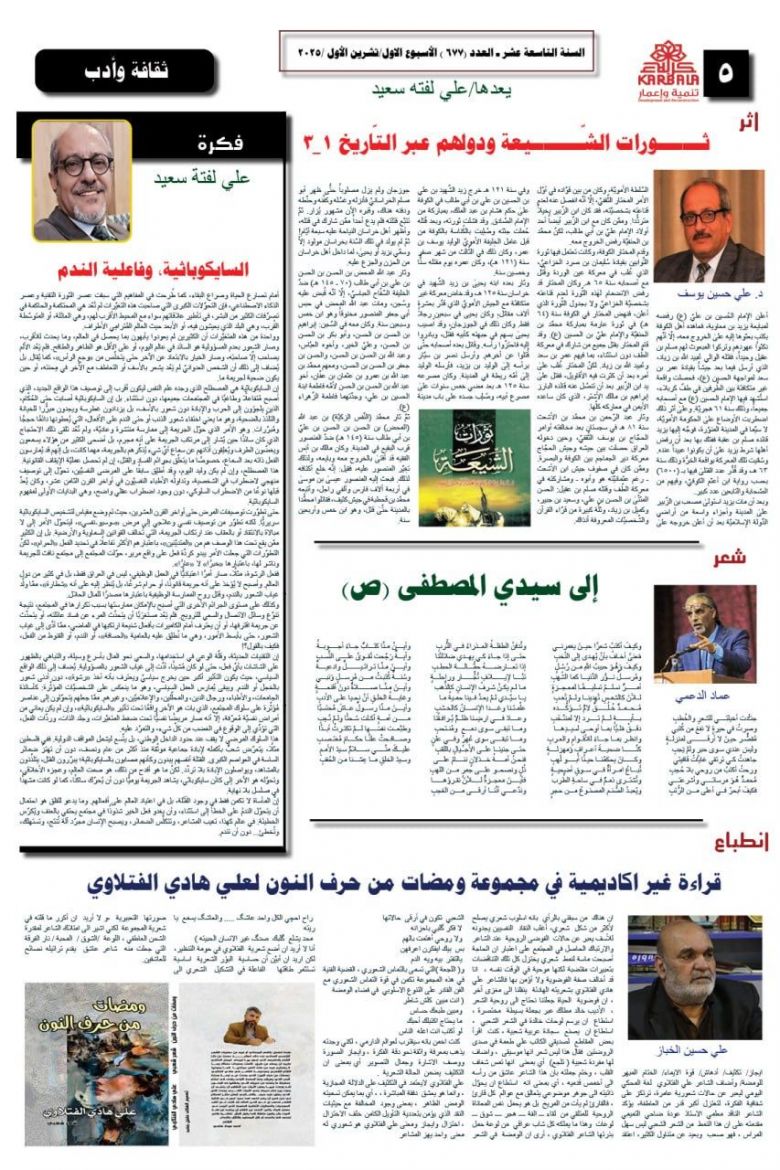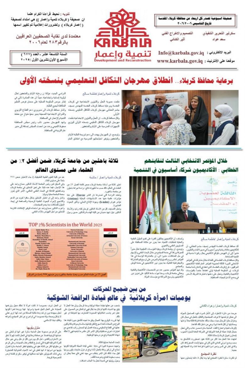 تصفح صحيفة كربلاء تنمية واعمار ذي العدد ٦٧٧