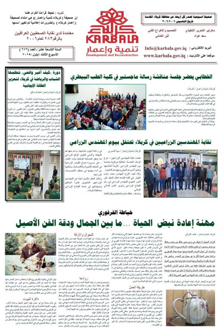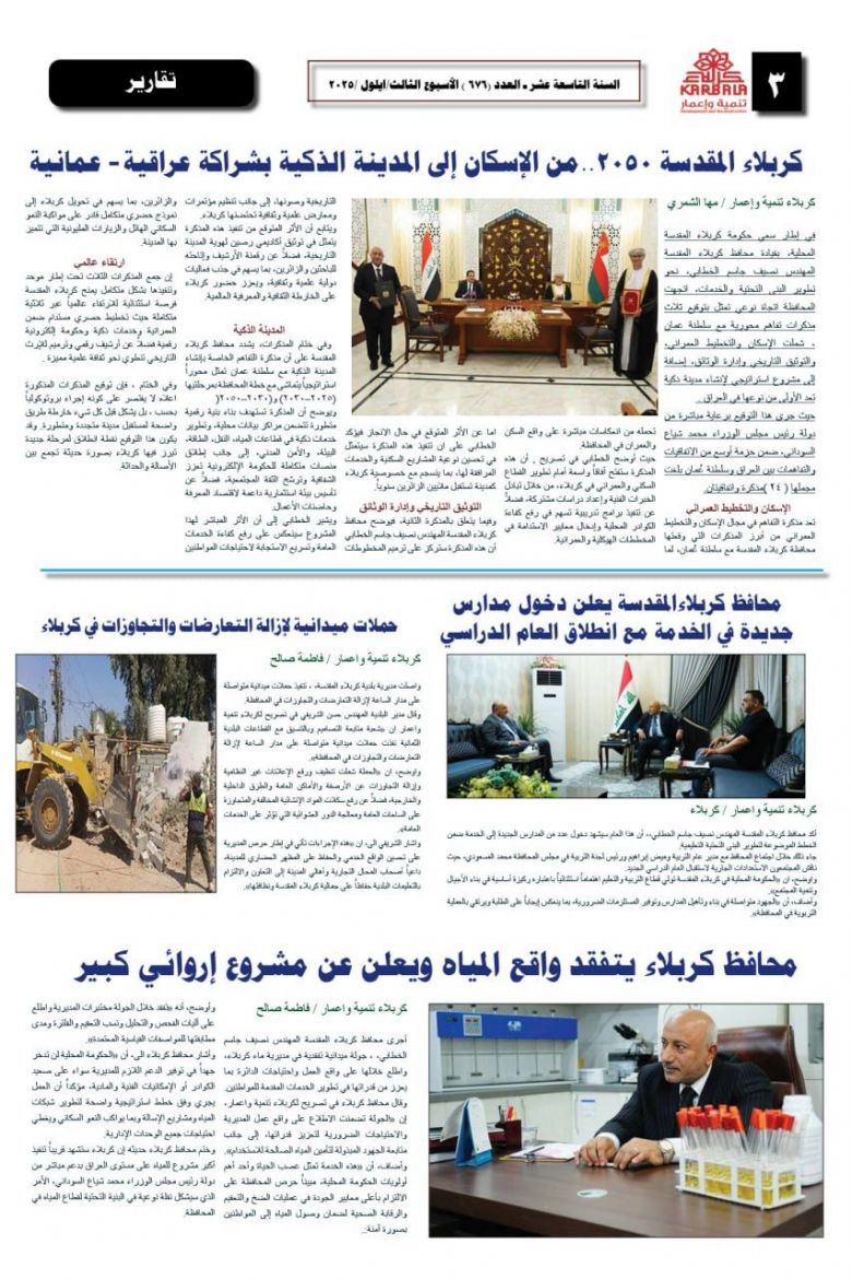 تصفح صحيفة كربلاء تنمية واعمار ذي العدد 676