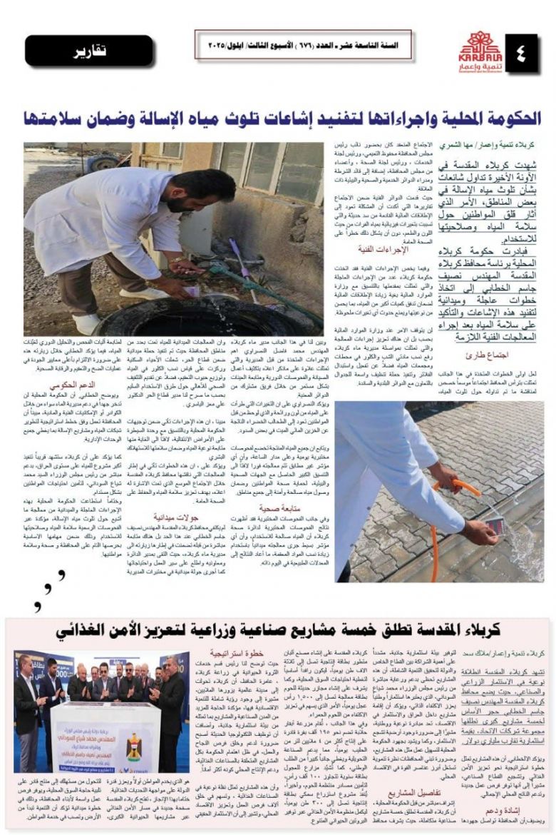 تصفح صحيفة كربلاء تنمية واعمار ذي العدد 680