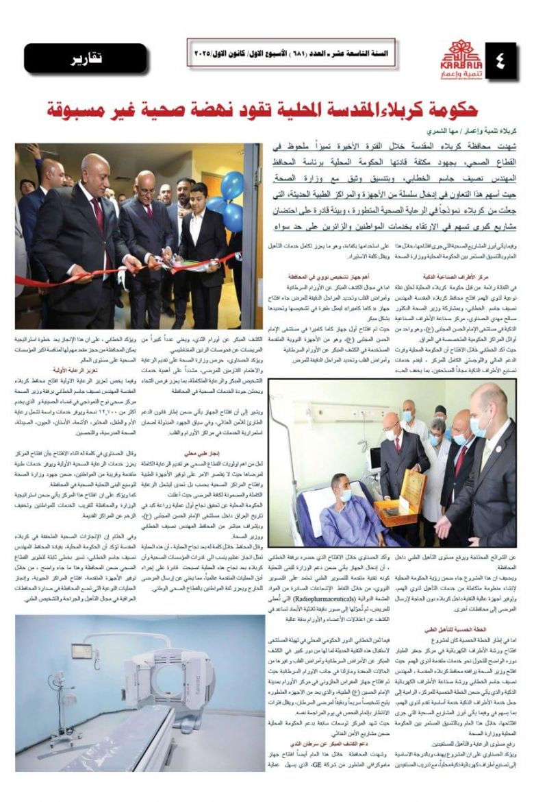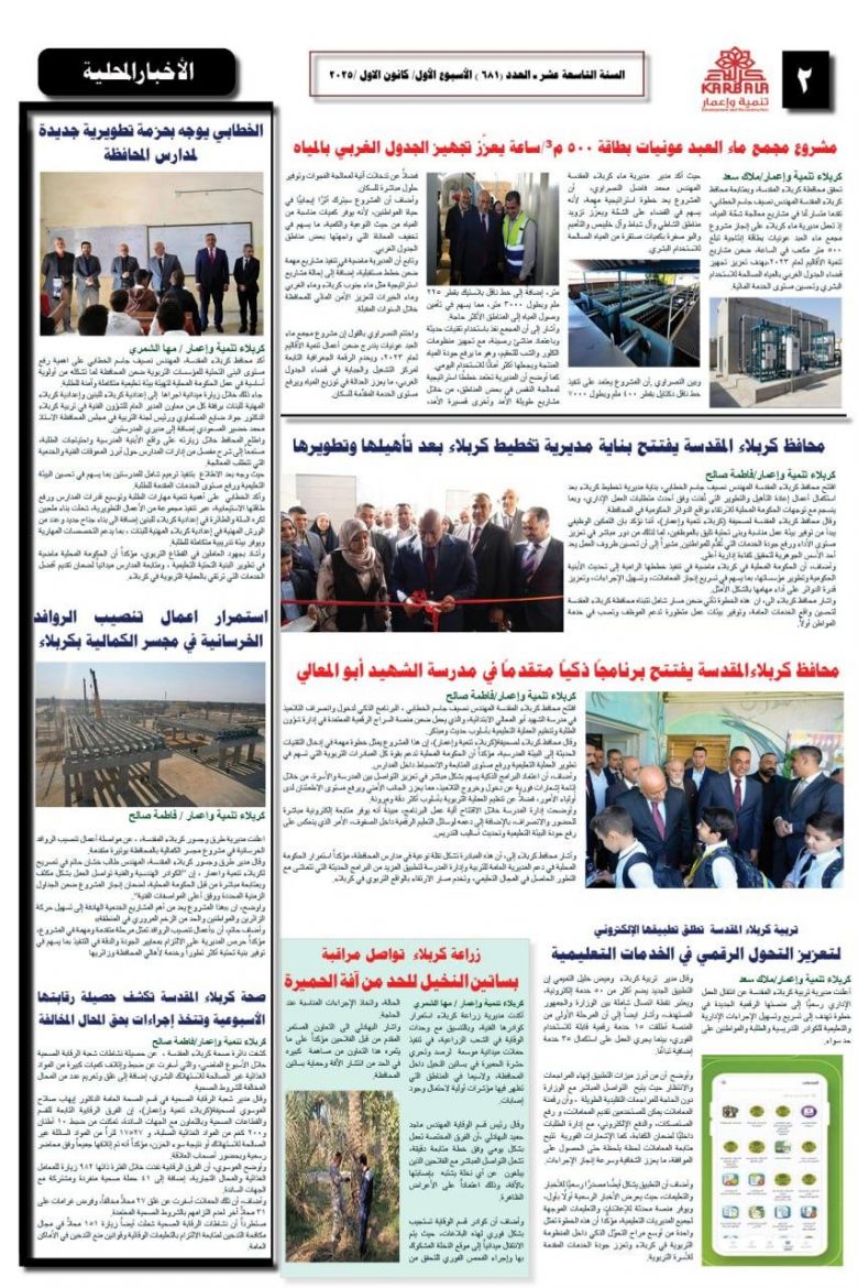تصفح صحيفة كربلاء تنمية واعمار ذي العدد681