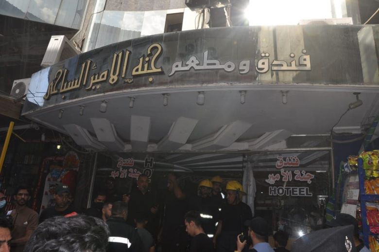 و اضاف،"تبين الحادث عن احتراق غرفه داخل فندق جنه الامير المكون من خمسة طوابق طابق ارضي مع اربع طوابق الحادث في الطابق الاول تم احاطة النيران من جميع الاتجاهات والسيطرة على الحادث بمهنية عالية رغم زحام الطريق بالمواكب الحسينية".