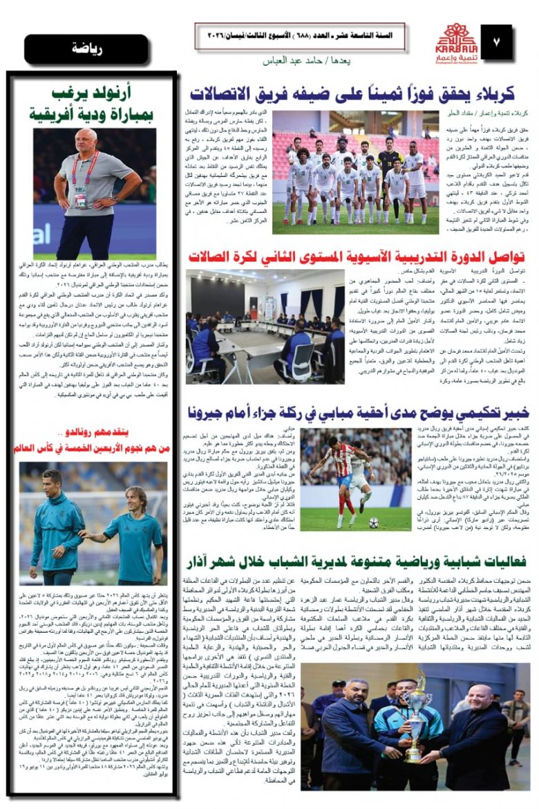 تصفح صحيفة كربلاء تنمية واعمار ذي العدد الكبير ٦٨٨