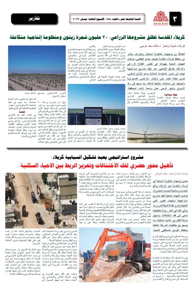 تصفح صحيفة كربلاء تنمية واعمار ذي العدد الكبير ٦٨٥