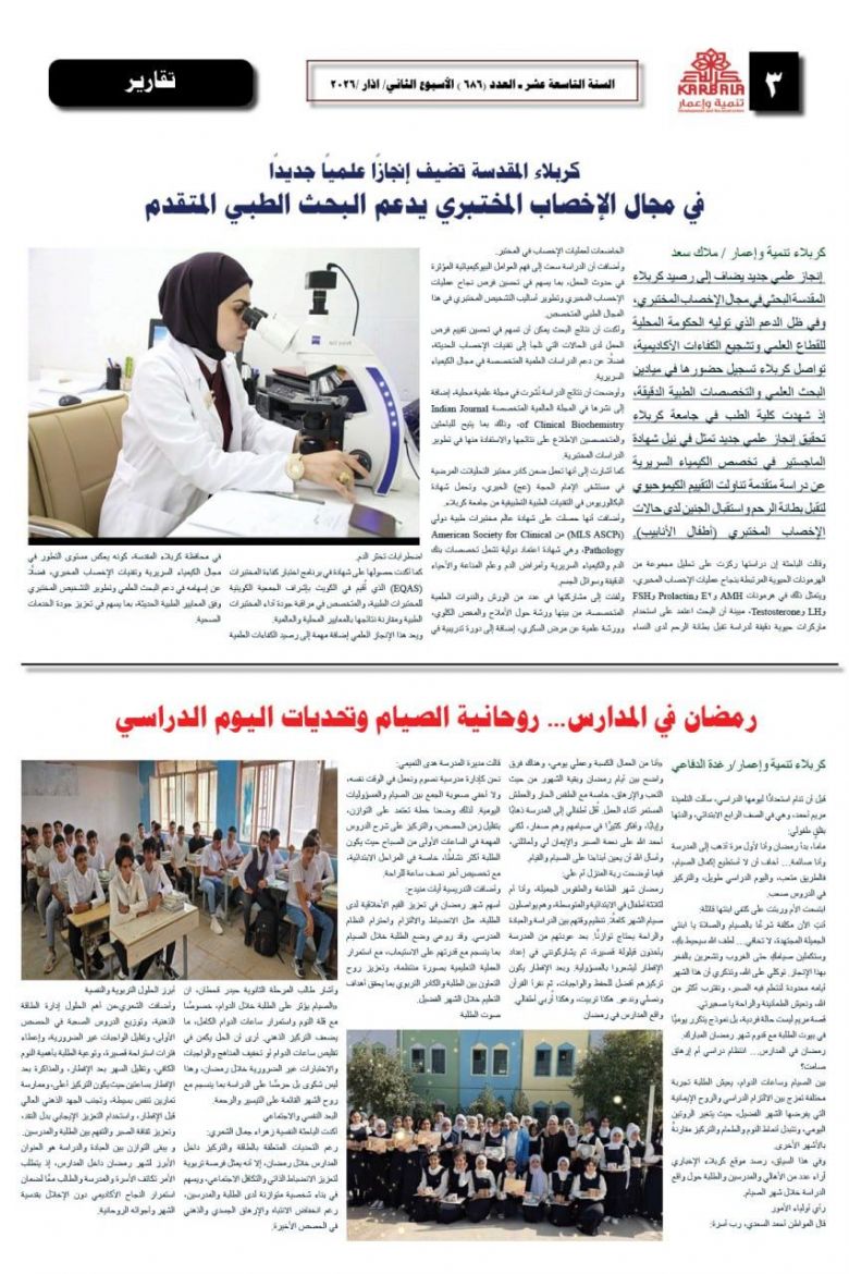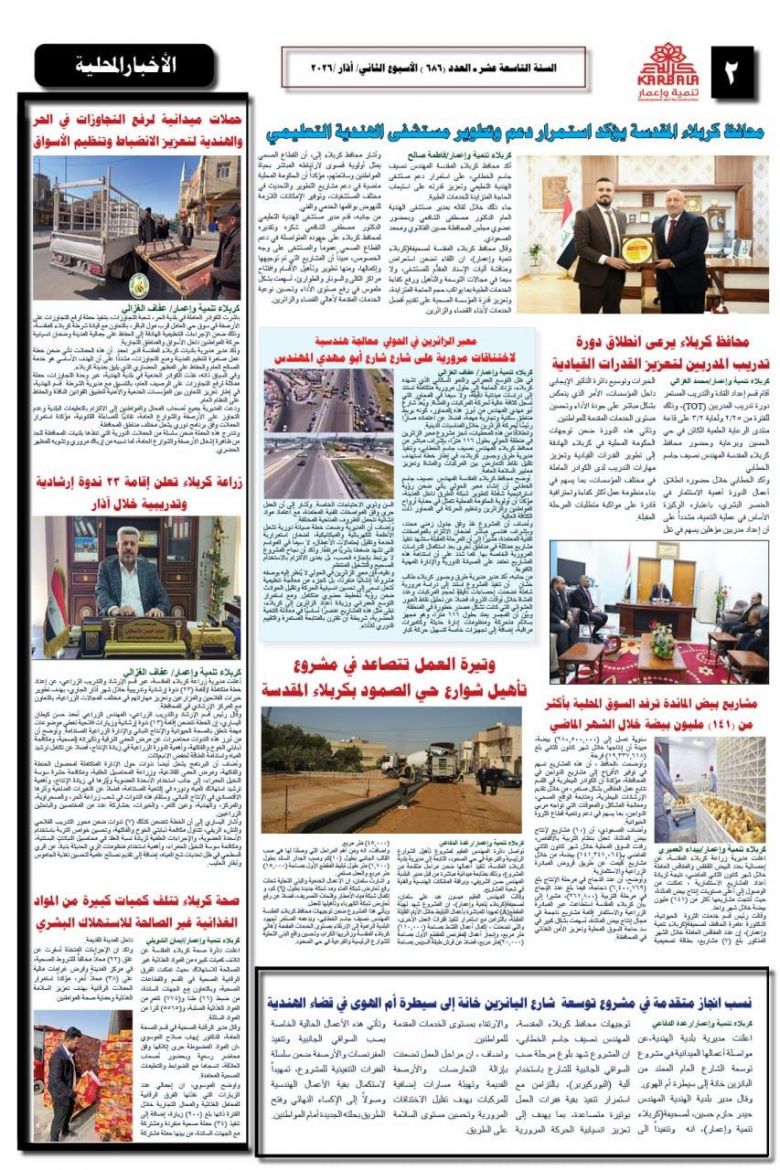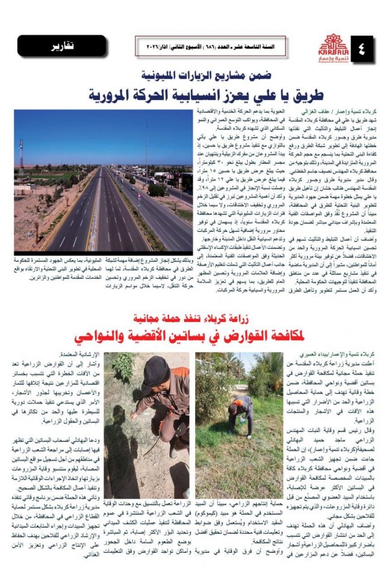 تصفح صحيفة كربلاء تنمية واعمار ذي العدد الكبير ٦٨٥
