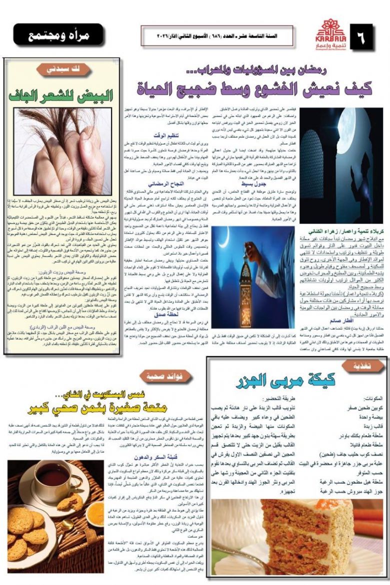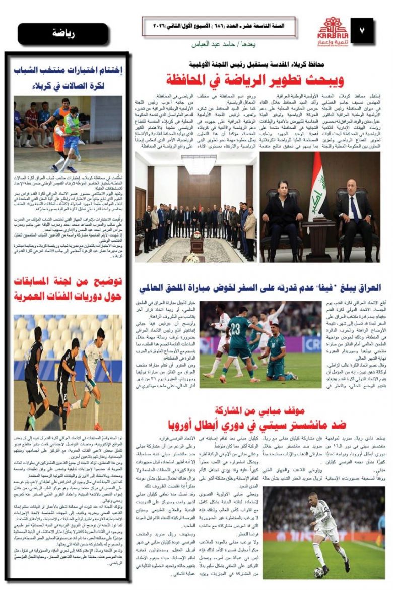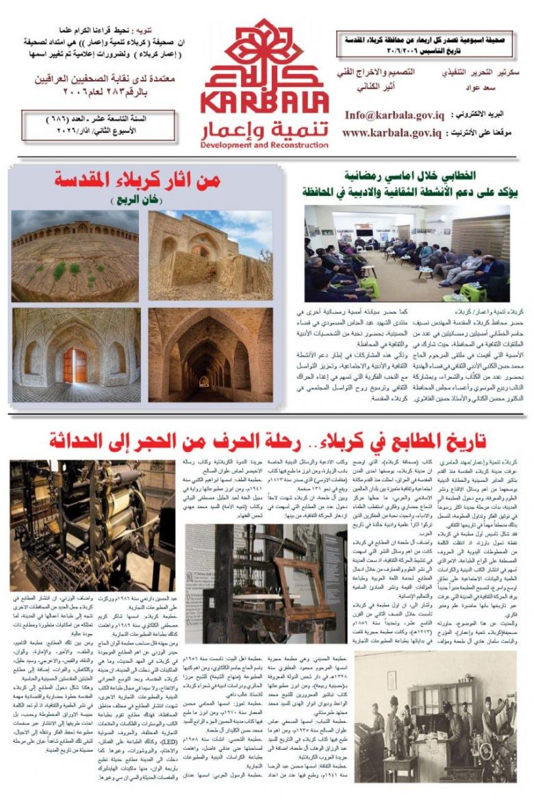 تصفح صحيفة كربلاء تنمية واعمار ذي العدد 686