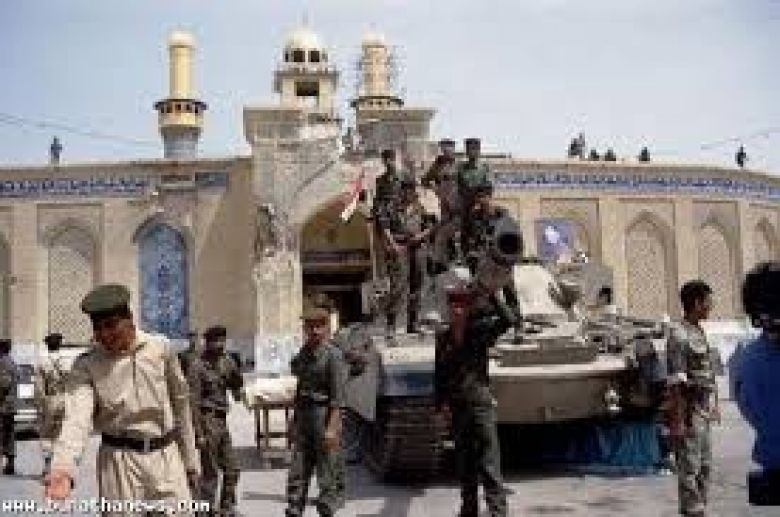 عند أندلاع الانتفاضة الشعبانية في العراق عام 1991م ضد نظام صدام حسين أنتفضت كربلاء بأيام قليلة وبعدها بيومين سيطر الثوار بشكل كامل على مدينة كربلاء ولكن بعد أيام تعرضت مدينة كربلاء إلى هجوم بالصواريخ ودخلت دبابات الجيش العراقي بقيادة حسين كامل ومجموعة من الحرس الجمهوري إلى المدينة حيث تعرض ضريح الإمام الحسين والعباس إلى أضرار كبيرة وقصفت قبة الإمام العباس بالدبابة وتدمر جزء كبير من ضريحي الإمام الحسين والعباس وقتل آلاف السكان والمدنيين وأرتكبت بعد أنتهاء الانتفاضة مجازر وأنتهاكات ضد السكان العزل وظهرت مقابر جماعية أكتشفت في 2003