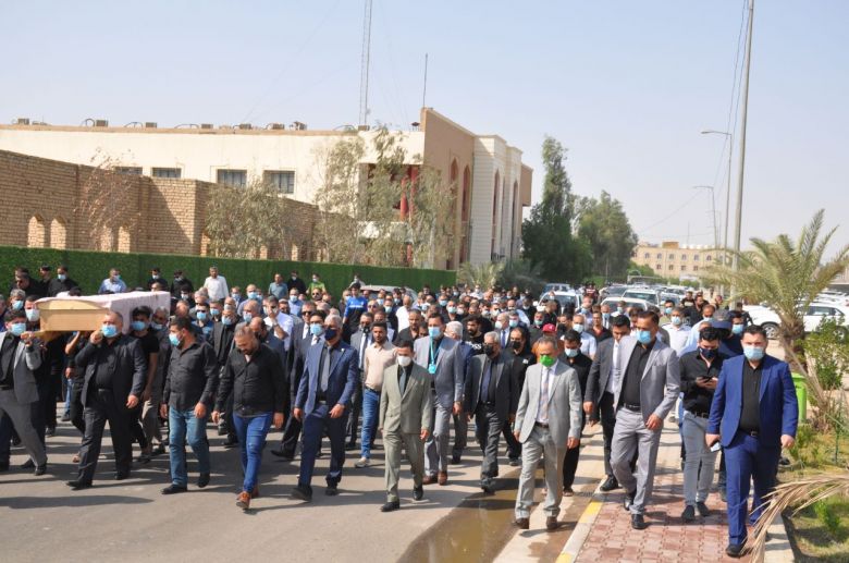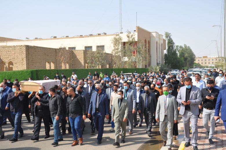 وحضر التشييع ممثل وزير التعليم العالي والبحث العلمي الاستاذ الدكتور باسم السعيدي رئيس جامعة كربلاء ورؤساء جامعات اخرى وبمشاركة اساتذة وموظفي جامعة كربلاء.