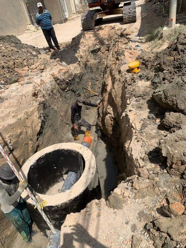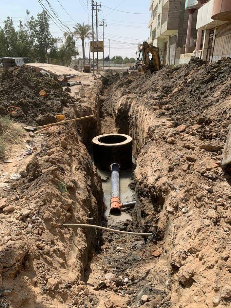 تقوم الكوادر الهندسية والفنية في قسم التنفيذ المباشر في المحافظة باعمال مشروع شبكة مجاري منطقة المعملجي حيث يقوم القسم برفع كافة التعارضات واعمال البنى التحتية لتهيئة الشارع الرئيسي ابتداءً من محطة الوقود وحتى مدينة الالعاب القديمة.