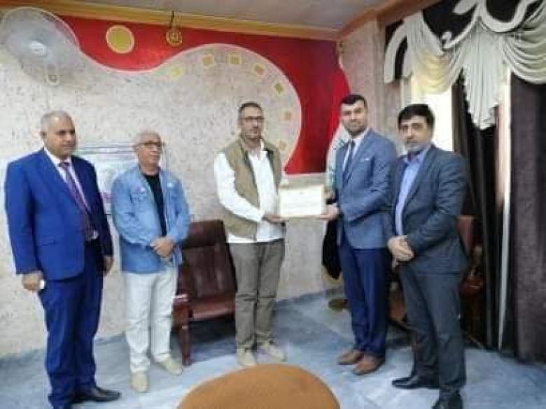 وفي ختام الاصبوحة قدم الاستاذ منتظر الشافعي قائمقام قضاء الهندية شهادة تقديرية للهاني ومن ثم شهادة أخرى مقدمه له من البيت الثقافي".