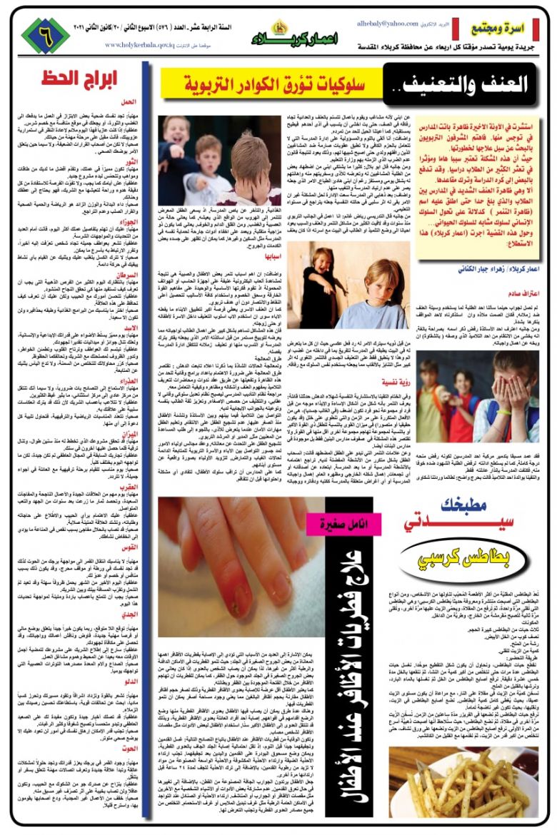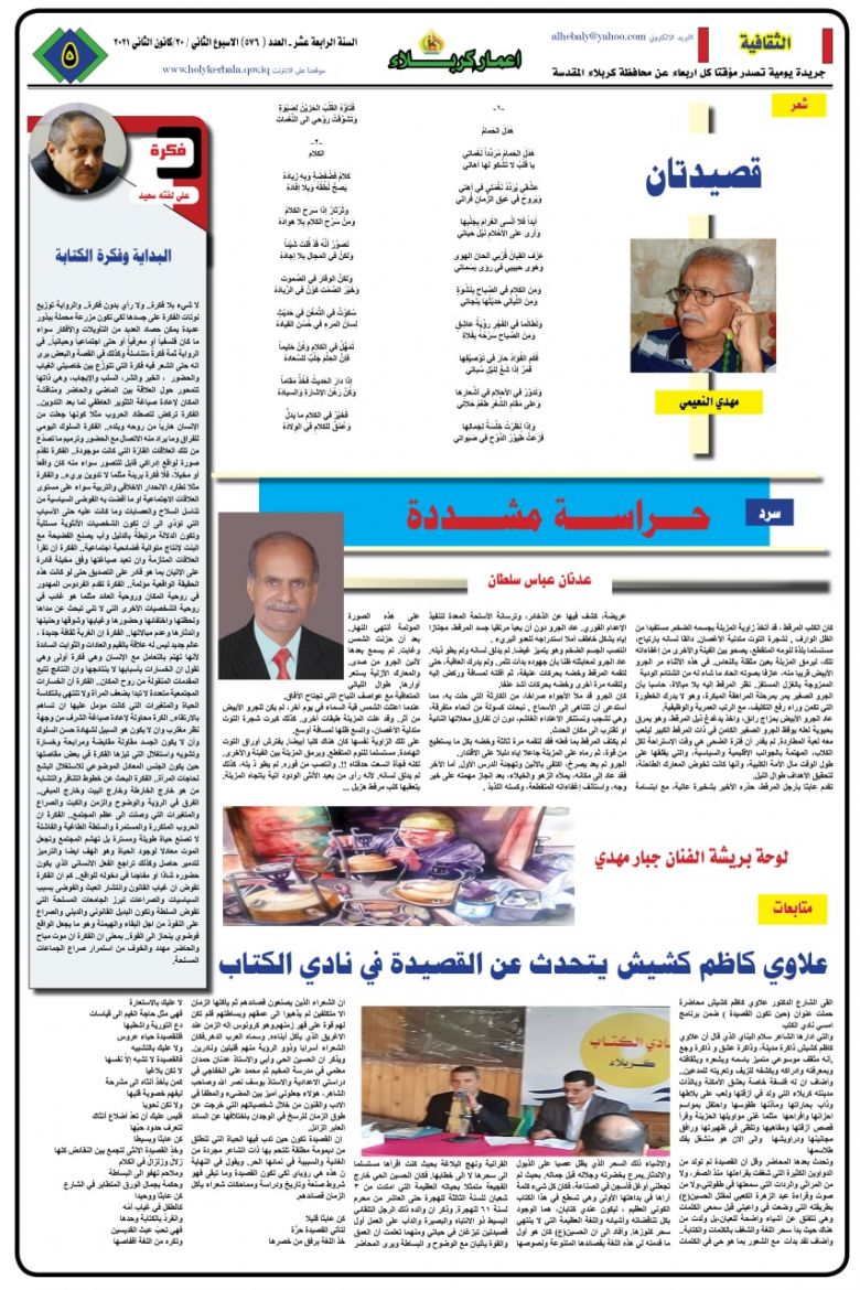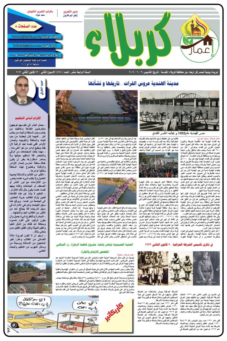 يتكون العدد(575) من صحيفة اعمار كربلاء لهذا الاسبوع من ثمان صفحات (محلية واخبار وتقارير ومتابعات وصفحة للتقارير وأخرى ثقافية إضافة الى صفحة الاسرة والمجتمع وفي الختام الصفحة الرياضية).