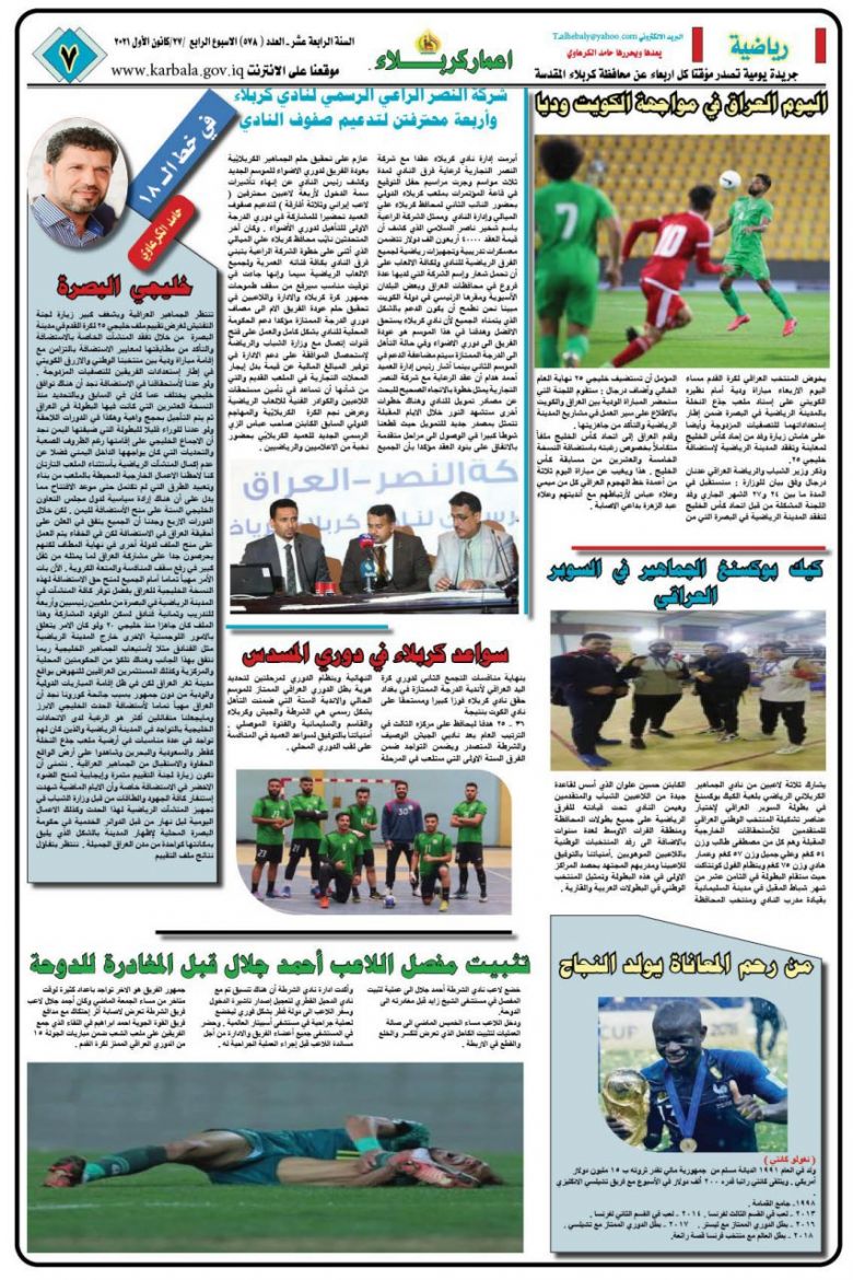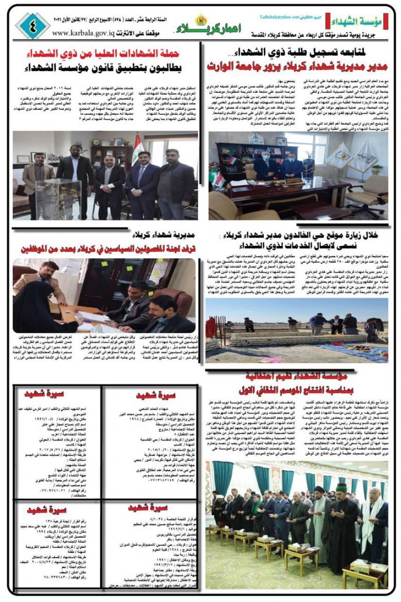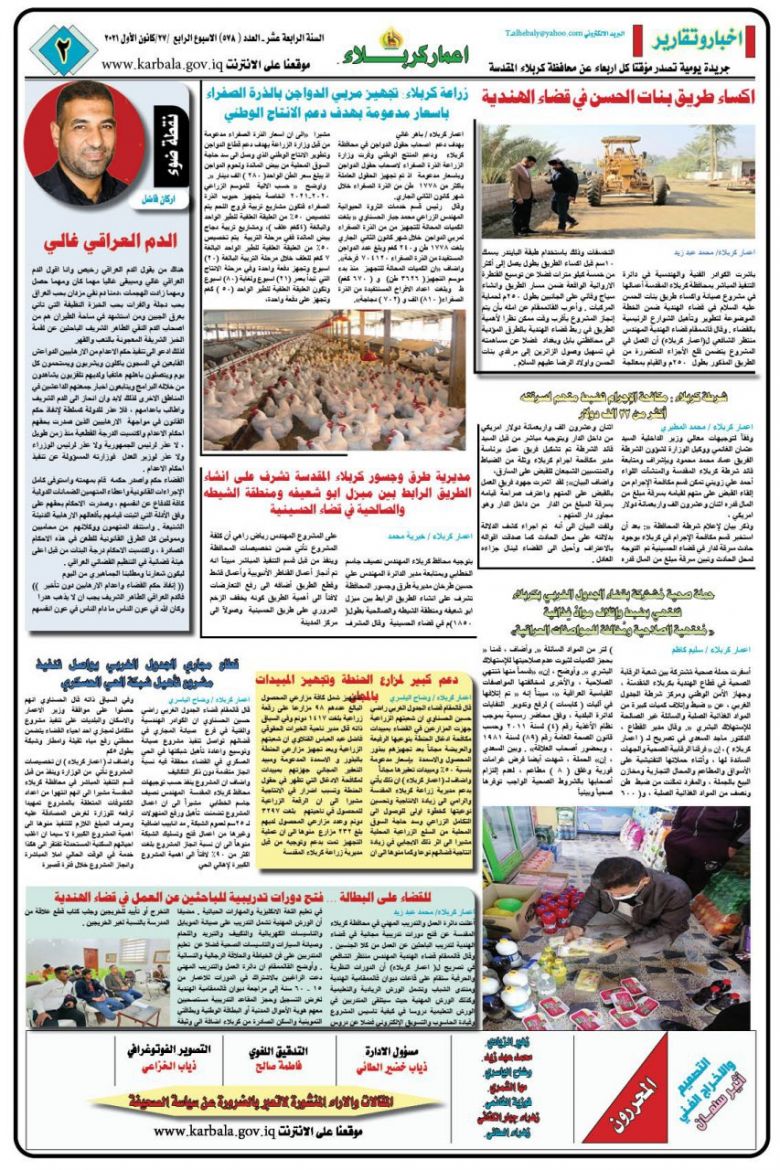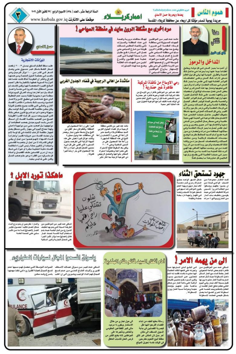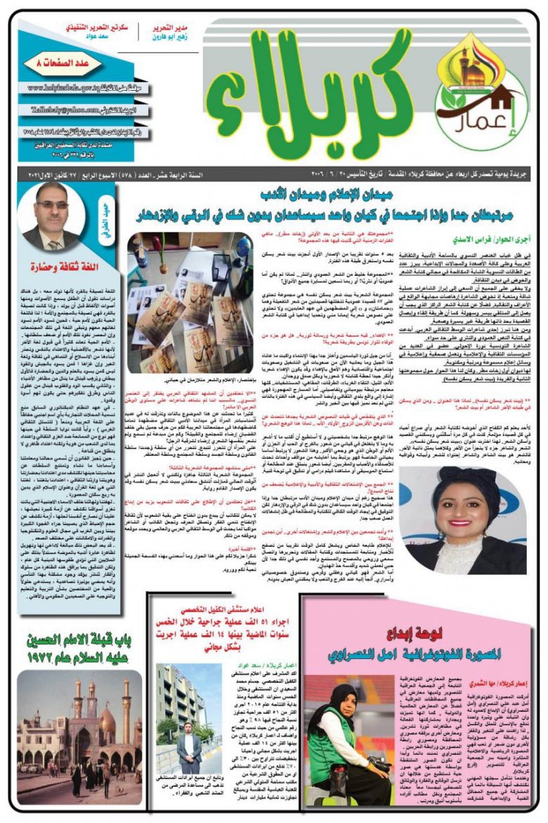 يتكون العدد(578) من صحيفة اعمار كربلاء لهذا الاسبوع من ثمان صفحات (محلية واخبار وتقارير ومتابعات وصفحة للتقارير وأخرى ثقافية إضافة الى صفحة الاسرة والمجتمع وفي الختام الصفحة الرياضية).