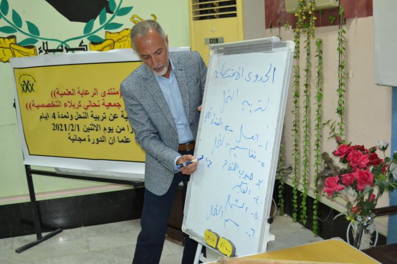 وقال رئيس جمعية نحالي كربلاء التخصصية علي عبد الرسول المستوفي في تصريح لموقع كربلاء الاخباري، "اختتمت اليوم الدورة التدريبية التي أقامها (منتدى الرعاية العلمية) والتي استمرت لمدة أربعة أيام , مبيناً ان "اليوم الأول كان للتعريف عن النحل بشكل عام وعن طائفة النحل وأجزائها أما اليوم الثاني كان عن منتجات الخلية والعدة التي يستخدمها النحال فيما كان اليوم الثالث عن أمراض النحل وأعداءه واختتم اليوم الأخير من الدورة للحديث عن الجدوى الاقتصادية من تربية النحل وطريقة إدامة المناحل ودعمها".