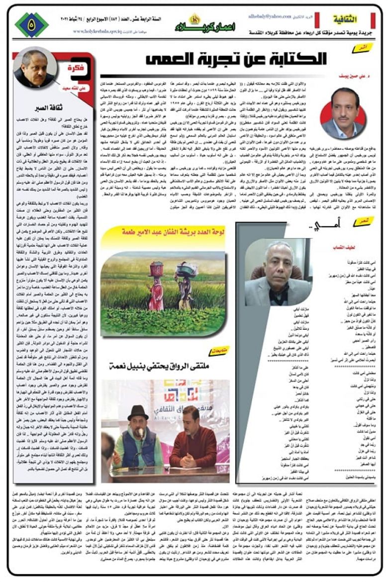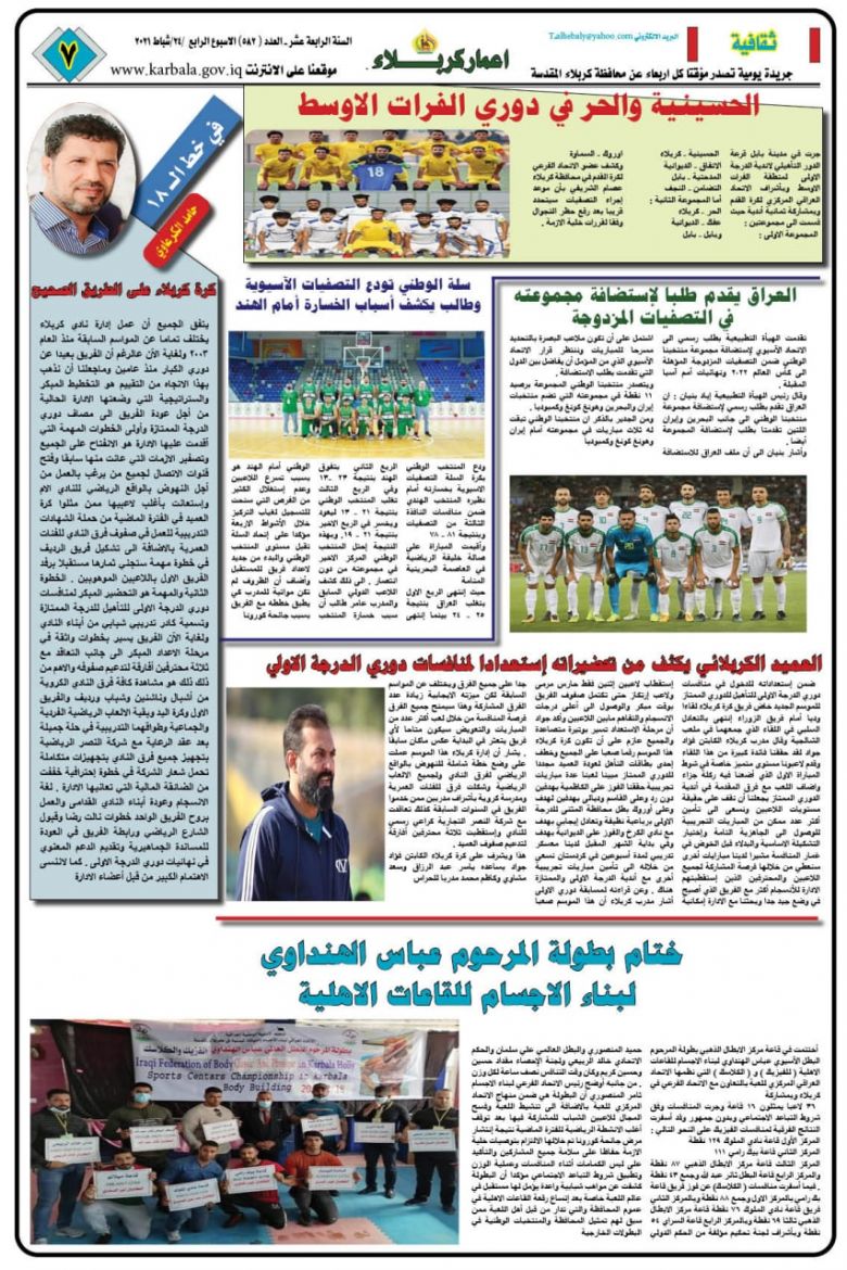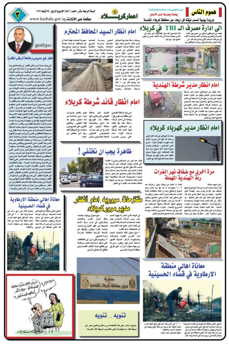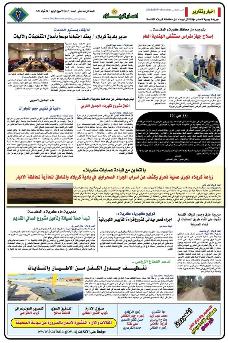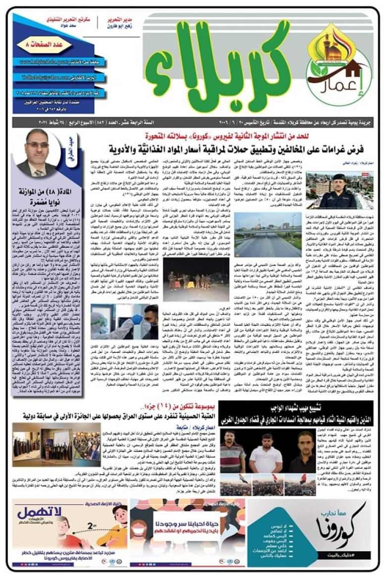 اصدر قسم الاعلام والاتصال الحكومي في محافظة كربلاء المقدسة عدداً جديداً من الصحيفة الرسمية للمحافظة (صحيفة اعمار كربلاء) بنسخة إلكترونية وبمساهمة نخبة من صحفيي المحافظة بنتاج إبداعي مائز.