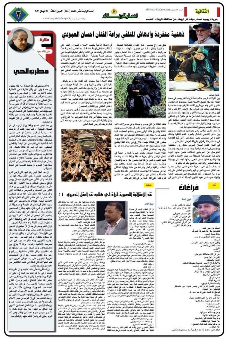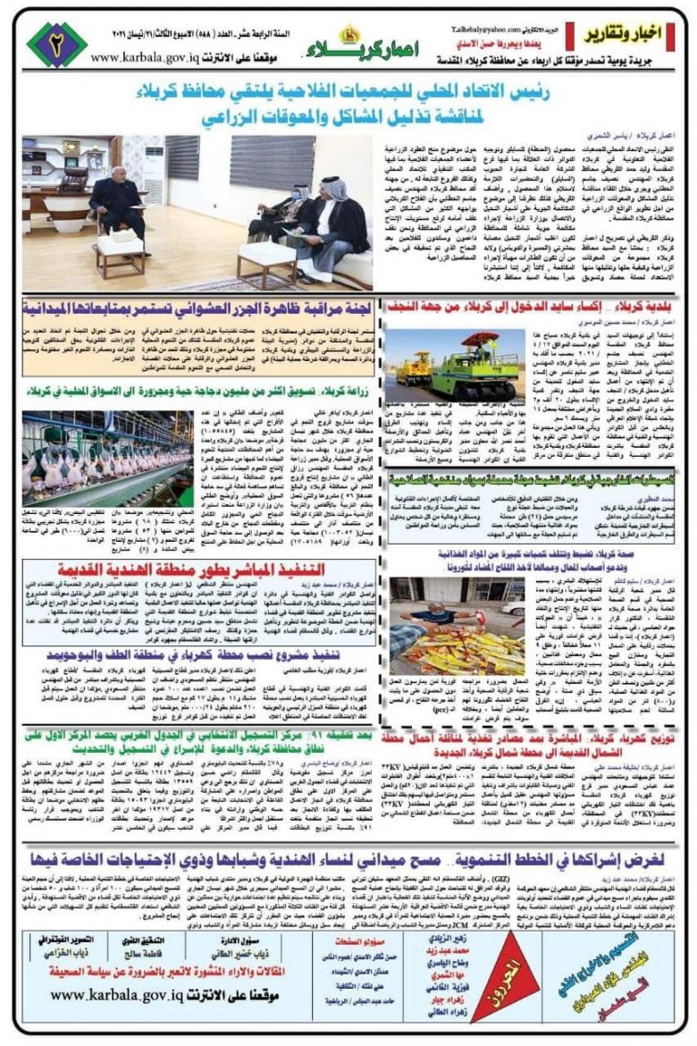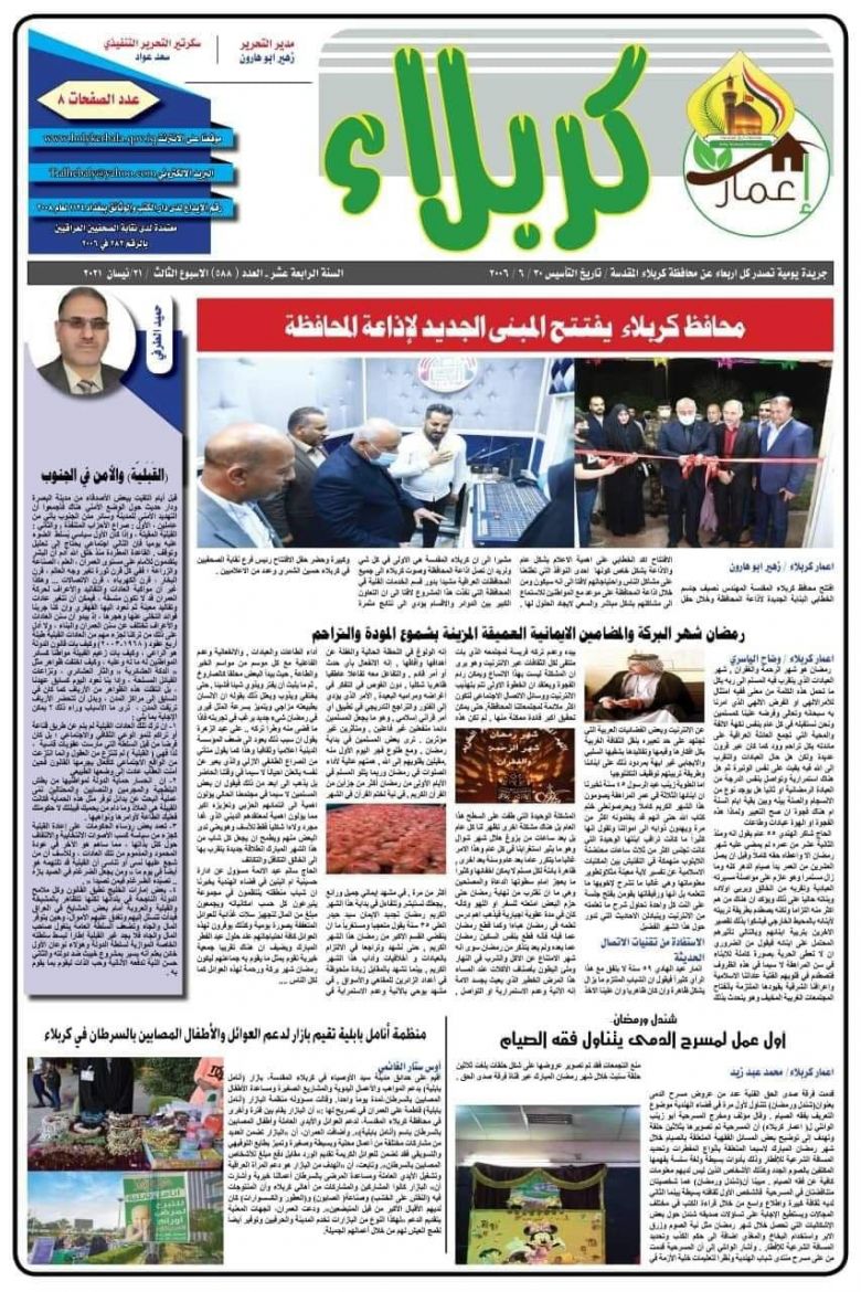 اصدر قسم الاعلام والاتصال الحكومي في محافظة كربلاء المقدسة عدداً جديداً من الصحيفة الرسمية للمحافظة (صحيفة اعمار كربلاء) بنسخة إلكترونية وبمساهمة نخبة من صحفيي المحافظة بنتاج إبداعي مائز.