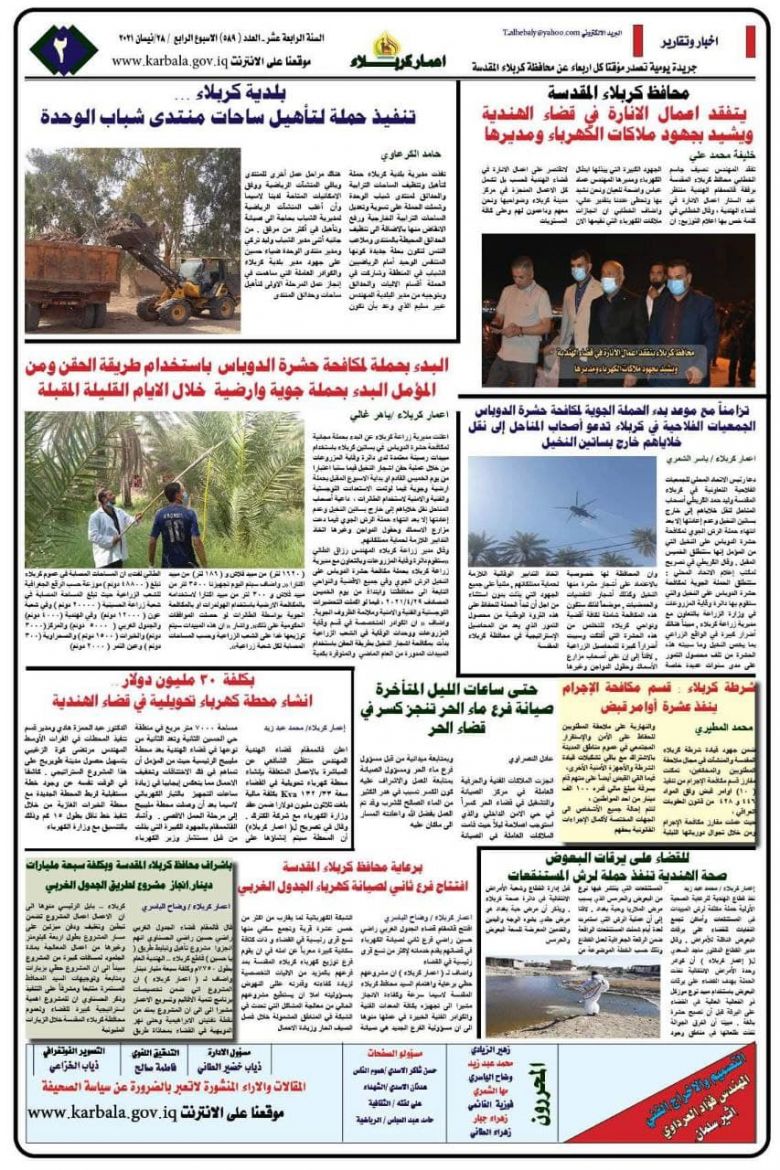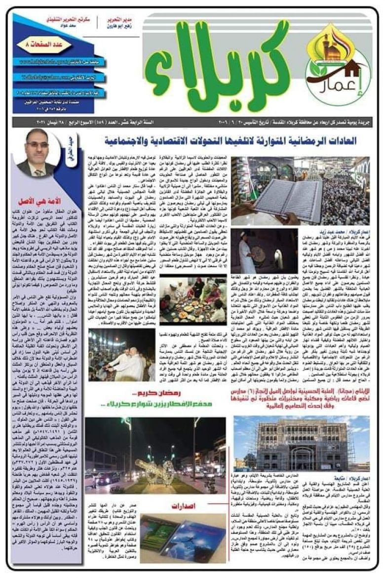 أصدر قسم الاعلام والاتصال الحكومي في محافظة كربلاء المقدسة عدداً جديداً من الصحيفة الرسمية للمحافظة (صحيفة اعمار كربلاء) بنسخة إلكترونية وبمساهمة نخبة من صحفيي المحافظة بنتاج إبداعي مائز.