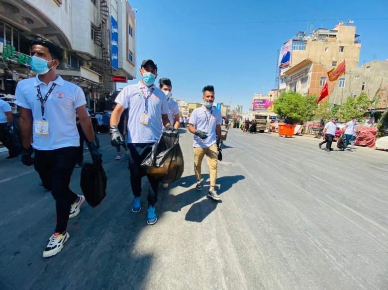 شارك أكثر من أربعين متطوعا ضمن تشكيل ( ناشطون في حب الحسين ) بأعمال التنظيف في المحافظة الى جانب مديرية بلدية كربلاء المقدسة من تقاطع التربية الى باب قبلة الأمام الحسين عليه السلام.
