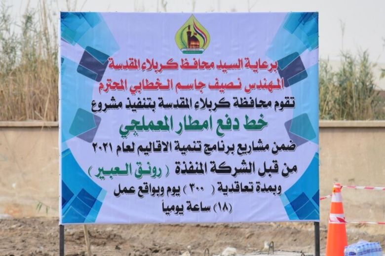 وضع محافظ كربلاء المقدسة المهندس نصيف جاسم الخطابي حجر الاساس لخط دفع مياه الأمطار في منطقة المعملجي ضمن مشاريع الحكومة المحلية الخدمية لأهالي كربلاء وضمن الاستعدادات للموسم الشتوي القادم.