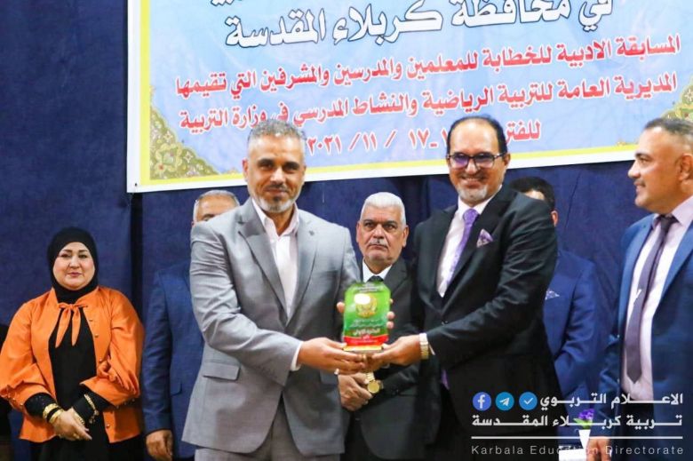 اختتمت مديرية تربية كربلاء المقدسة المسابقة الادبية للخطابة للمعلمين والمدرسين والمشرفين التي استمرت فعالياتها على مدى ثلاثة أيام في قاعة النشاط المدرسي بمشاركة عدد كبير من السادة والسيدات الذين مثلوا 15 مديرية من مديريات التربية في العراق بحضور ممثل وزارة التربية ووفود من محافظات عراقية.