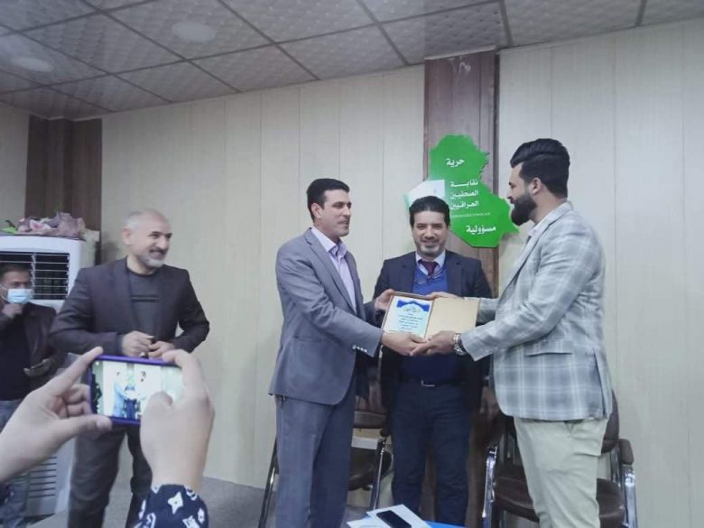 و كان التكريم خلال اجتماع النقابة التنسيقي مع مراسلي ومصوري القنوات الفضائية في المحافظة ,على قاعة مقر النقابة، وجرى خلال الاجتماع الذي اداره رئيس فرع النقابة الاستاذ حسين الشمري وعضو الهيأة الادارية الدكتور ماجد الخياط مناقشة معوقات عمل المراسلين والمصورين، فضلا عن تبادل الخبرات بين جيل الرواد والشباب، و تكريم بعض الزملاء .