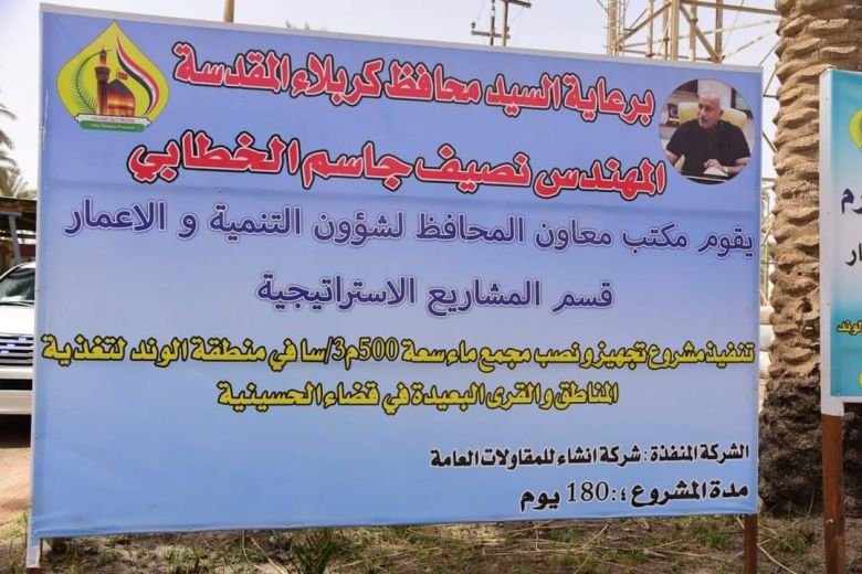 وقال المكتب الاعلامي في بيان تلقى موقع كربلاء الاخباري نسخة منه، ان "محافظ كربلاء المهندس نصيف جاسم الخطابي وضع حجر الاساس لمشروع تجهيز ونصب مجمع ماء بسعه 500 متر مكعب في الساعة في منطقه الوند ضمن قضاء الحسينية.