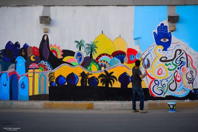 وبدأت الحملة (التطوّعية) التي يقوم بها الفنانون والرسامون بطلاء وتجميل النفق الذي يمر بساحة الأحرار (فلكة التربية) وسط كربلاء، وعبر لوحات جدارية ورسوم تشكيلية، حيث تم استثمار الأنفاق وجدران الأبنية لرسم الأحداث الجارية وتخليدها.