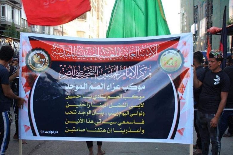 أولت العتبة الحسينة المقدسة اهتمامها بشريحة الصم والبكم حيث أسست مركز خاص لتبني هذه الشريحة بتعليمهم وتخرجيهم للمجتمع كفرد فعال ليشارك في جميع مفاصل الحياة ومن جملة نشاطاتهم المجتمعية تأسيس موكب الصم الموحد الذي يضم في كنفه جميع افراد هذه الشريحة من مختلف محافظات العراق، اذ يعده خيمة حسينية جمعت كل فئات الصم ليتوحدوا بهتاف من القلب (لبيك يا حسين) حيث اختلفت مدنهم وجمعهم طف كربلاء لاحياء نهضة الحسين(عليه السلام).