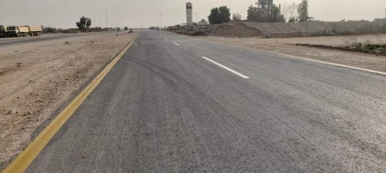 واوضح، انه "تم اكمال أعمال الاكساء بالطبقة الاسفلتية السطحية المطورة بمادة البوليمر بعرض ٨.٢٥م وبسمك ٥ سم لكامل الطريق بطول ٤٥ كم اعتبارا من بدايته عند المحطة (٠٠+٤٥) قرب قرية الزكاربط لغاية المحطة (٠٠+٩٠) قرب سيطره معمل سمنت كربلاء".