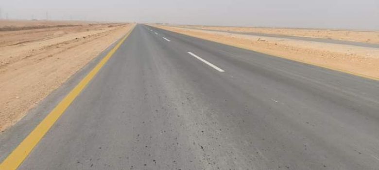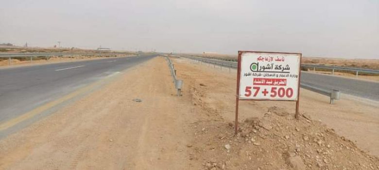 وتابع محمود الى، انه "تم اكمال تثبيت السياج الوقائي المغلون لجسور وادي الابيض ومقترباته وللاقواس بطول ٢.٩كم والعمل مستمر بحدل وتصفيه الحصى الخابط صنف (B) للأكتاف بسمك ١٥سم وبعرض ٢.٥م للاكتاف الخارجيه وبعرض ١.٥ م لجهة الجزرة الوسطيه واعمال تخطيط الطريق بالاصباغ الحرارية والمواد العاكسة".
