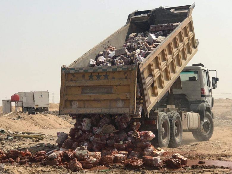 وأوضح العباسي، "تم ضبط وإتلاف أكثر من (398 طناً ونصف الطن) من المواد الغذائية الصلبة، و(615 ألفاً و153 لتر) من المشروبات غير الصالحة للاستهلاك البشري"، مبيناً أن "عملية الإتلاف جرت في موقع الطمر الصحي، وعبر آليات (كابسات) لتدوير النفايات التابعة لدائرة البلدية".