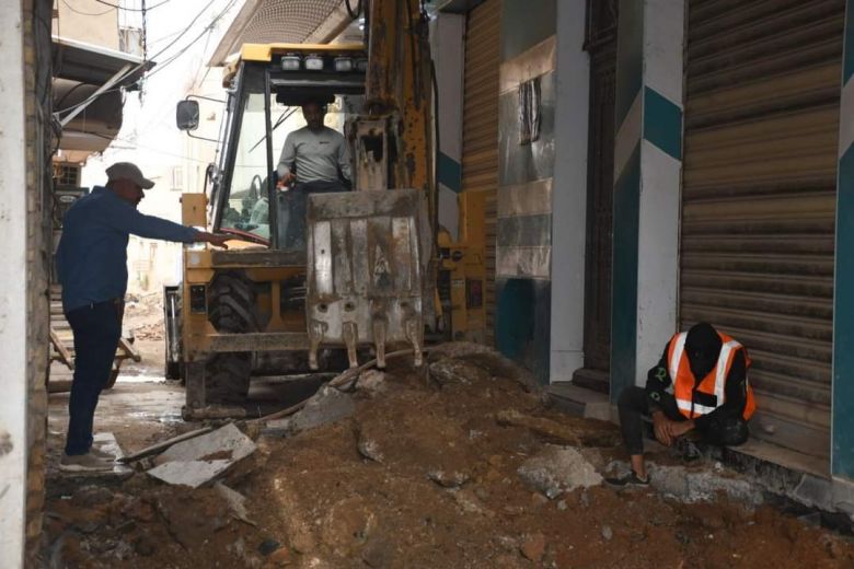 واوضح، ان "يتم العمل بواقع (٤٥ بين شارع وزقاق) وبمعدل أطوال (٧٥٥٠ متر . طولي ) حيث يتم العمل على قلع الشوارع وإزالة التجاوزات التي تتعارض مع تنفيذ المشروع".