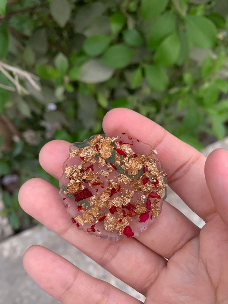 وعن ادوات العمل تابعت قائلة: تتنوع ادوات العمل بين الالوان والاكسسوارات ومادة الريزن السائلة التي تشبه الماء والتي من الصعب التعامل معها، وبرأيي انها اصعب الاعمال اليدوية التي مارستها لكون التعامل مع السوائل ليس بالأمر السهل اذ يحتاج الى دقة متناهية في التعامل اضافة الى الوقت وذلك ليتنسى تصلب المادة من اجل الخروج بنتيجة عمل مرضية وجميلة.