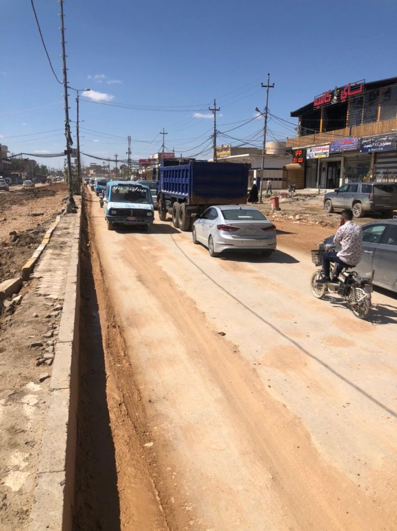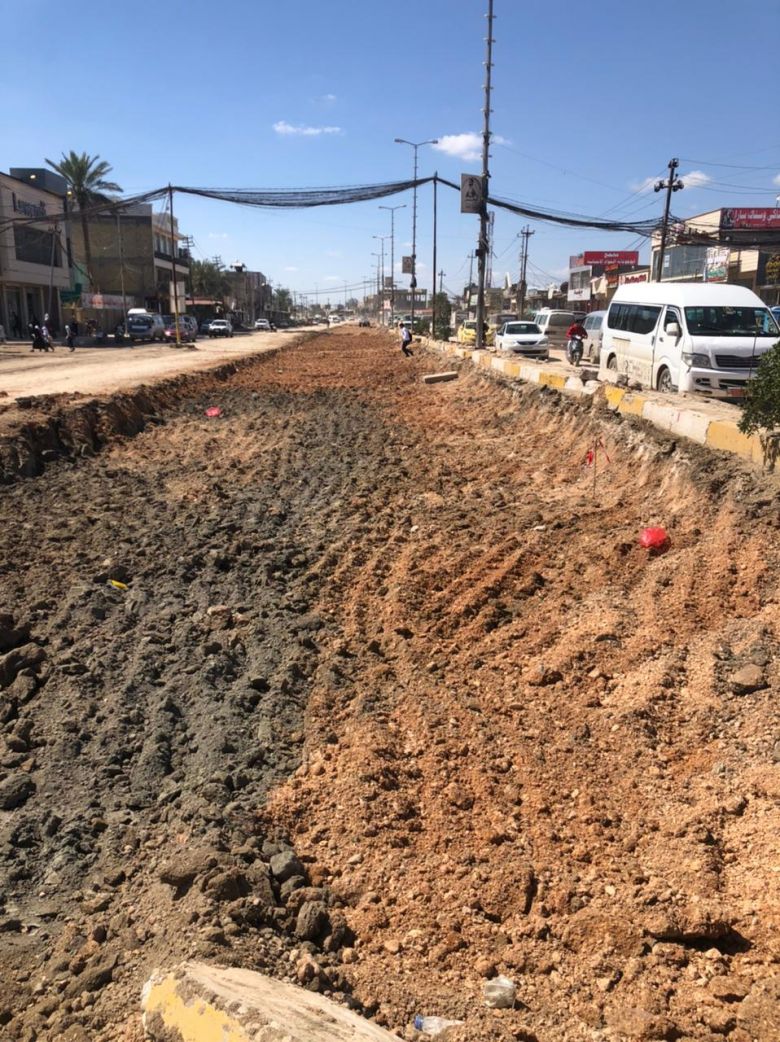 واضاف، أن "الشارع مكون من أربع سايدات ، السايدين الرئيسين بعرض (١١.٥ متر) لكل سايد اما الخدميين فبعرض( ٦ متر) كل سايد".