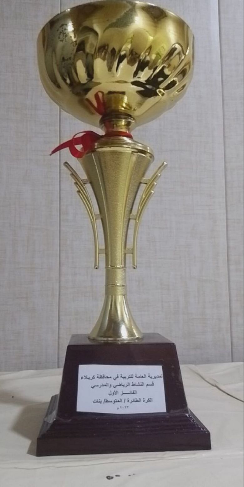 واوضحت، ان "المباراة جرت على القاعة الاولمبية في حي الملحق وسط المدينة حيث حققت مدرستنا وبعد جهد كبير وتفاني وإخلاص من الطالبات المتميزات ومدرسة مادة التربية الرياضية سارة محمد ناصر من الحصول على المرتبة الأولى بكرة الطائرة بعد فوزهن على متوسطة الملاك للبنات بشوطين بفارق (15 نقطة) للاشيء".