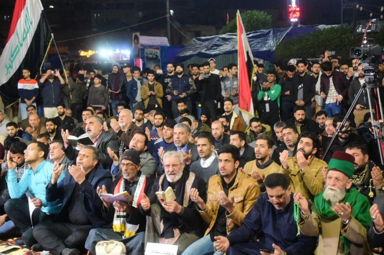 ارتفعتْ أكفّ المتظاهرين السلميين بمحافظة كربلاء المقدسة، مساء اليوم الخميس، بالدعاء إلى البارئ (عزّ وجل) أن يحفظ العراق والعراقيين الذين يخوضون معركة الإصلاح والتغيير، عبر إقامة فعالية قراءة (دعاء كميل) المخصوص في كل ليلة جمعة، في (فلكة التربية) المخصصة للتظاهرات السلمية.
