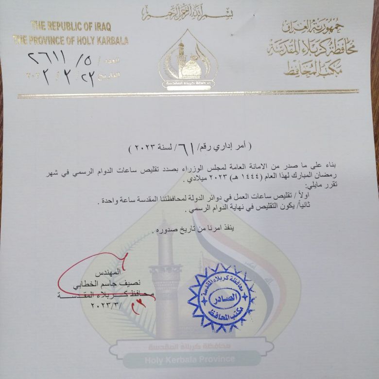 خاطب محافظ كربلاء المقدسة المهندس نصيف جاسم الخطابي، وزارة المالية حول تثبيت المتعاقدين مم ...