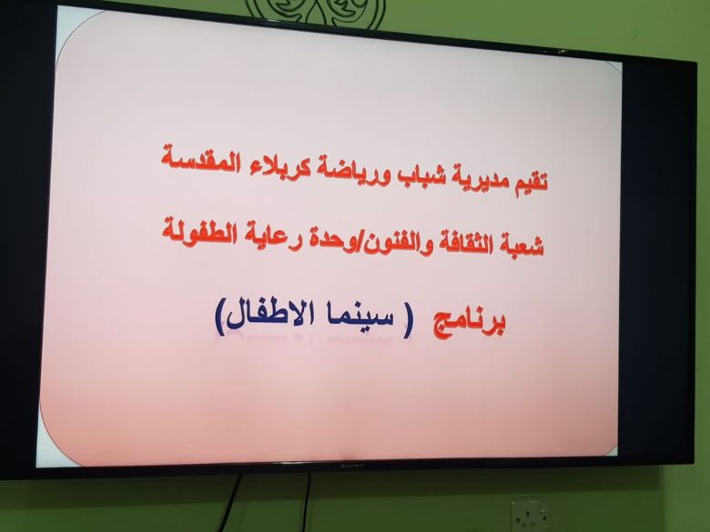 أقامت مديرية شباب ورياضة كربلاء المقدسة/ وحدة رعاية الطفولة في شعبة الثقافة والفنون وضمن الخطه المركزيه لشهر نيسان وبالتعاون والتنسيق مع إدارة روضة المصباح السحري الاهلية نشاط للأطفال ( سينما الأطفال ) وبمشاركة ثلاثين طفلا وطفلة من مرحله التمهيدي.