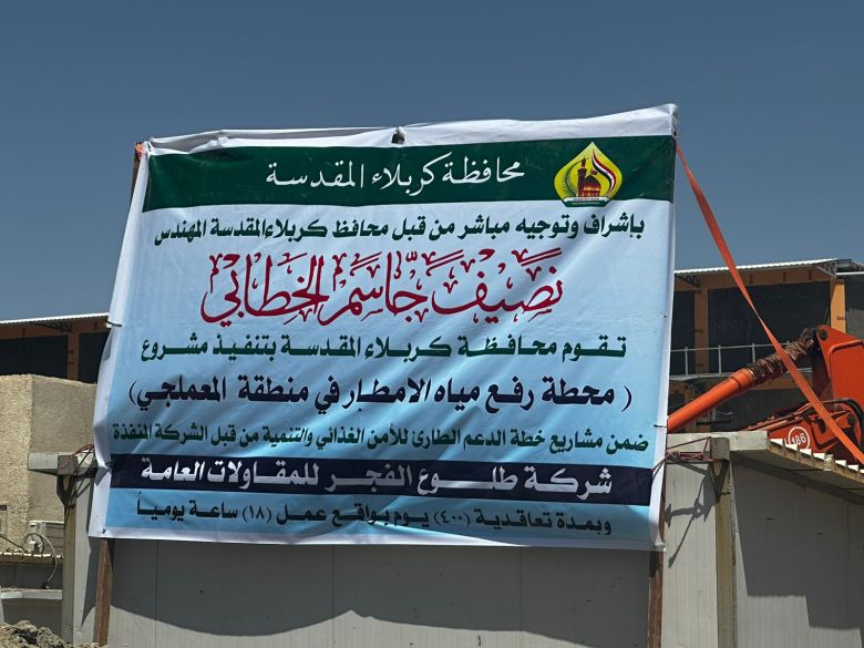 وقال المهندس المقيم على المشروع عادل عبيد في تصريح لموقع كربلاء الاخباري، ان "وبحسب توجيهات محافظ كربلاء المقدسة المهندس نصيف جاسم الخطابي وبالتعاون مع مديرية مجاري كربلاء المقدسة تمت المباشرة بمشروع محطة رفع مياه الامطار في المعملجي بنسب انجاز فعلية ١٢%".