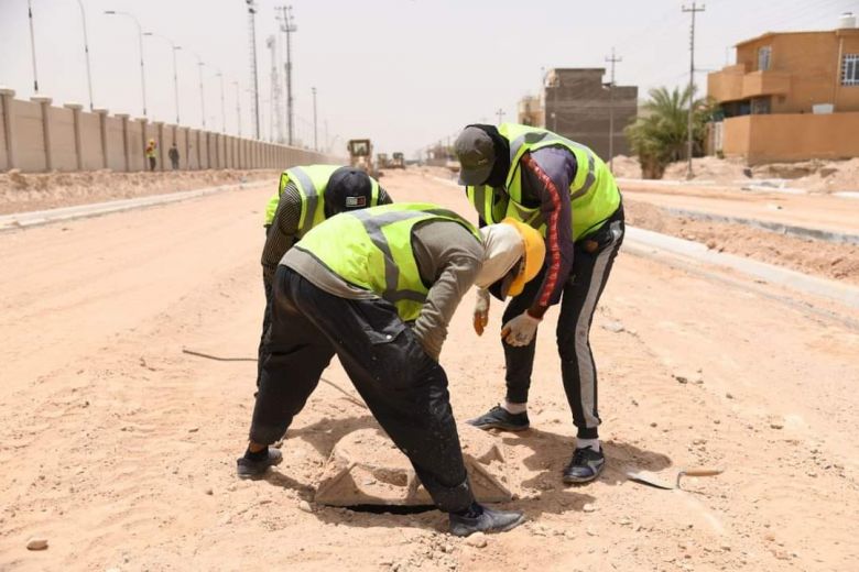 واوضح العبيدي، ان "العمل جاري بتغليف الارصفة بالمقرنص للشوارع الفرعية بالكامل، واكمال اعمال البنى التحتية وبنسب انجاز جداً متقدمة".