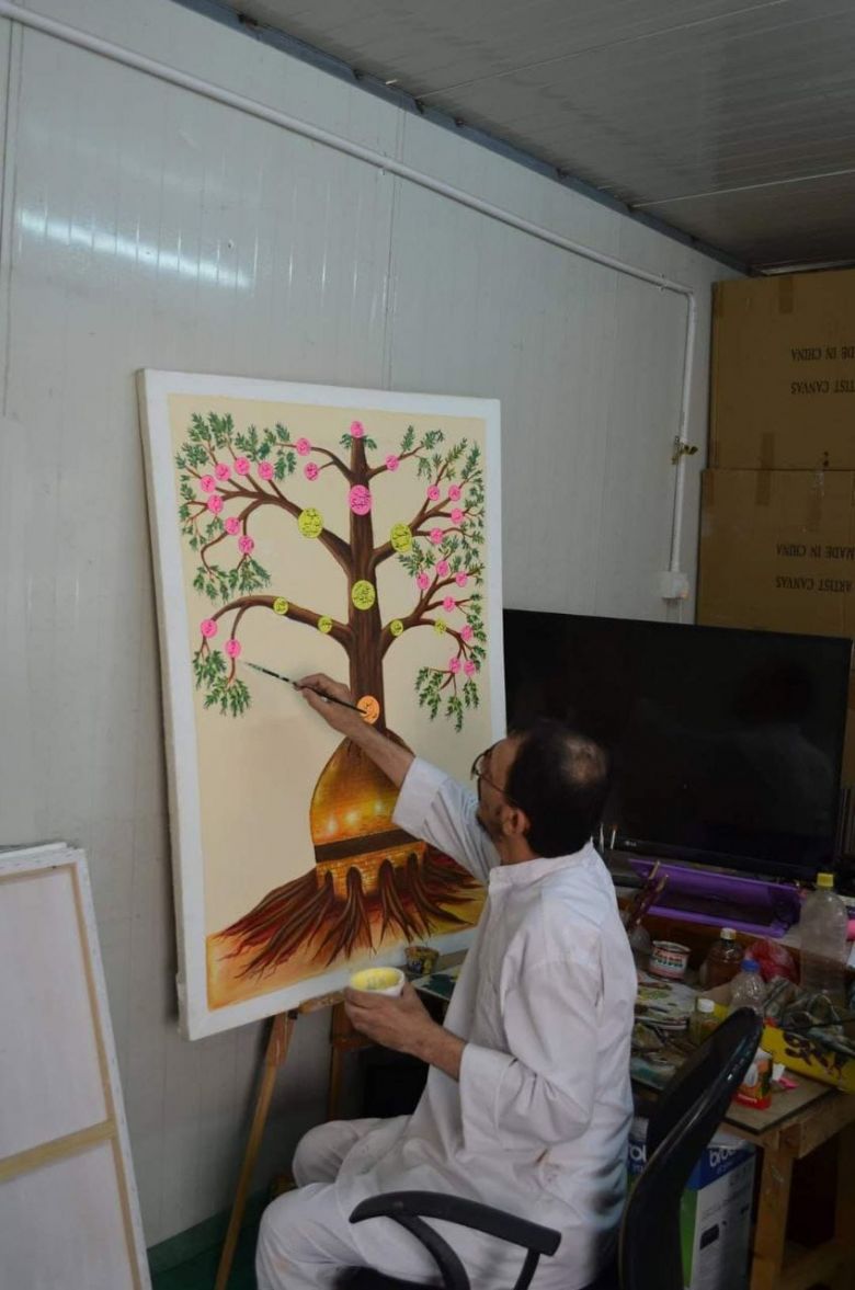 (موقع كربلاء الاخباري) التقى الفنان محمد البيضاني ليسرد لنا ما وثقه خلال رحلة اعماله المتفردة قائلا: منذ التحاقي بمدرسة الخزرجية الابتدائية وانا غارق بين الالوان لا تنفك اناملي من امساك الفرشاة حيث حصدت اول كأس وانا في الصف الثاني كهدية لمشاركتي خلال معرض للرسم كان خاصا بالمدرسة.