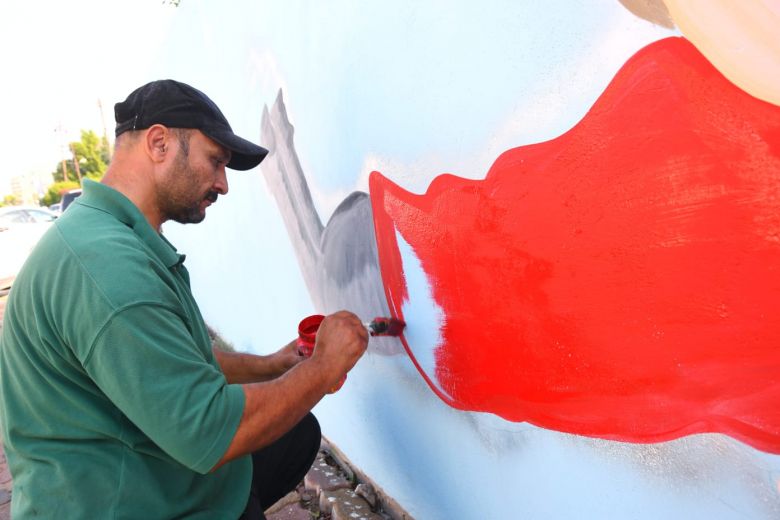 وهو الرسم على جدران المدارس والدوائر الحكومية من خلال أعمال تطوعية وفردية، مضيفاً بعد أن تم تعييني على وزارة الداخلية أصبح عملي أكثر وضوحاً وتطور من خلال توجيهات قيادة الشرطة ، مما اعطاني مساحة للتعرف على شخصيتي واعمالي.