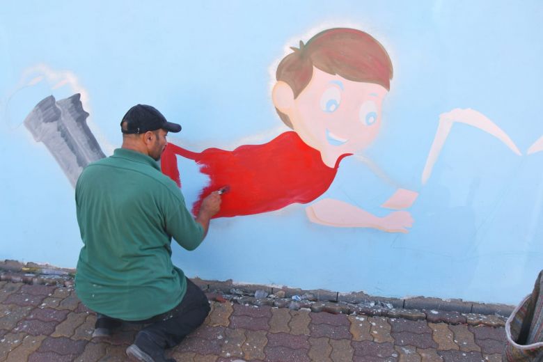 ومن هذا المبدأ انطلق احسان عبدالله بريشته وألوانه الجميلة واضعاً بصماته على جدران المدارس والدوائر الحكومية ،ومن خلال ريشته والوانه الناطقة جعل من الجدران الصماء لوحات فنية تنبض بألوان الحياة المشرقة المليئة بالبهجة والمستقبل المشرق.