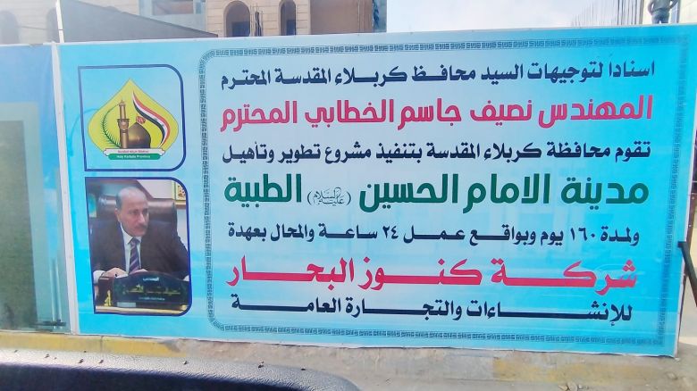 وقالت المهندسة المشرفة على المشروع هيام عبد الزهرة في تصريح لموقع كربلاء الإخباري، أنه " واستنادا لتوجيهات محافظ كربلاء المقدسة المهندس نصيف جاسم الخطابي، تواصل الكوادر الفنية والهندسية أعمال تأهيل وتطوير مدينة الامام الحسين الطبية والمتضمنة بناء بناية طوارئ جديدة وتطوير وتأهيل بناية الطوارئ القديمة".