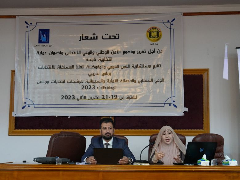 استضاف مكتب المفوضية العليا لحقوق الانسان في محافظة كربلاء المقدسة، الدورة التدريبية حول الوعي الإنتخابي والحصانة الأمنية والسبرانية لمرشحات إنتخابات مجالس المحافظات غير المنتظمة بإقليم لعام ٢٠٢٣.