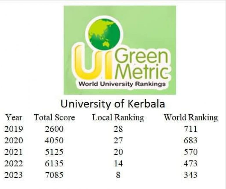 وقال مدير الشؤون العلمية في الجامعة الدكتور فاضل نور الدين في تصريح صحفي تابعه موقع كربلاء الإخباري، ان "التصنيف تم فيه تقييم الجامعات من حيث تطبيق معاييرالاستدامة البيئية ،والذي انطلق عام 2010 ويتضمن 6 معايير أساسية و 39 مؤشرا فرعيا".