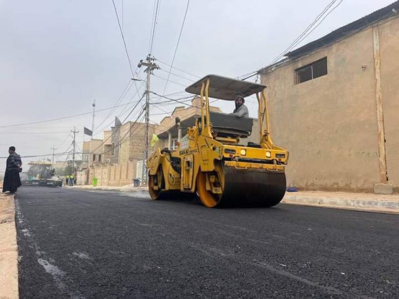 بالصور.. استمرار العمل بتعبيد شوارع حي الكردي في قضاء الهندية