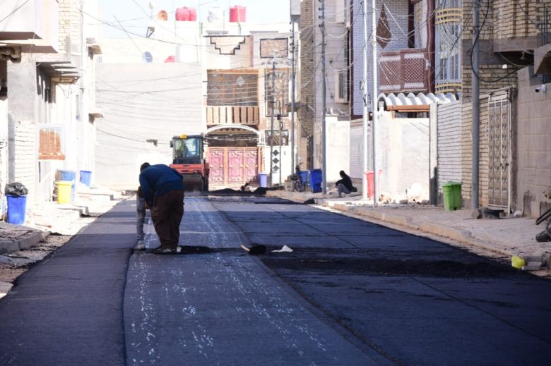 باشرت الكوادر الفنية والهندسية التابعة لدائرة قسم المشاريع، اليوم الاثنين، عن المباشرة بتعبيد شوارع حي الانتفاضة الاولى بعد اكمال البنى التحتية.